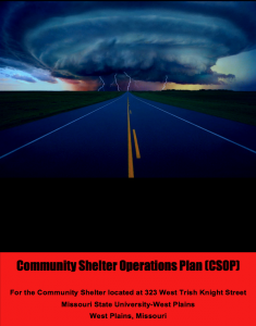 CSOPCover Community Shelter Operations Plan (CSOP) For the Community Shelter located at 323 West Trish Knight Street Missouri State University-West Plains West Plains, Missouri